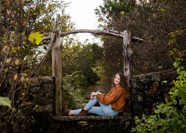 A short hike down a mulch trail leads to a varied setting that includes rock walls, rustic buildings, stone steps and acres of wooded forest.